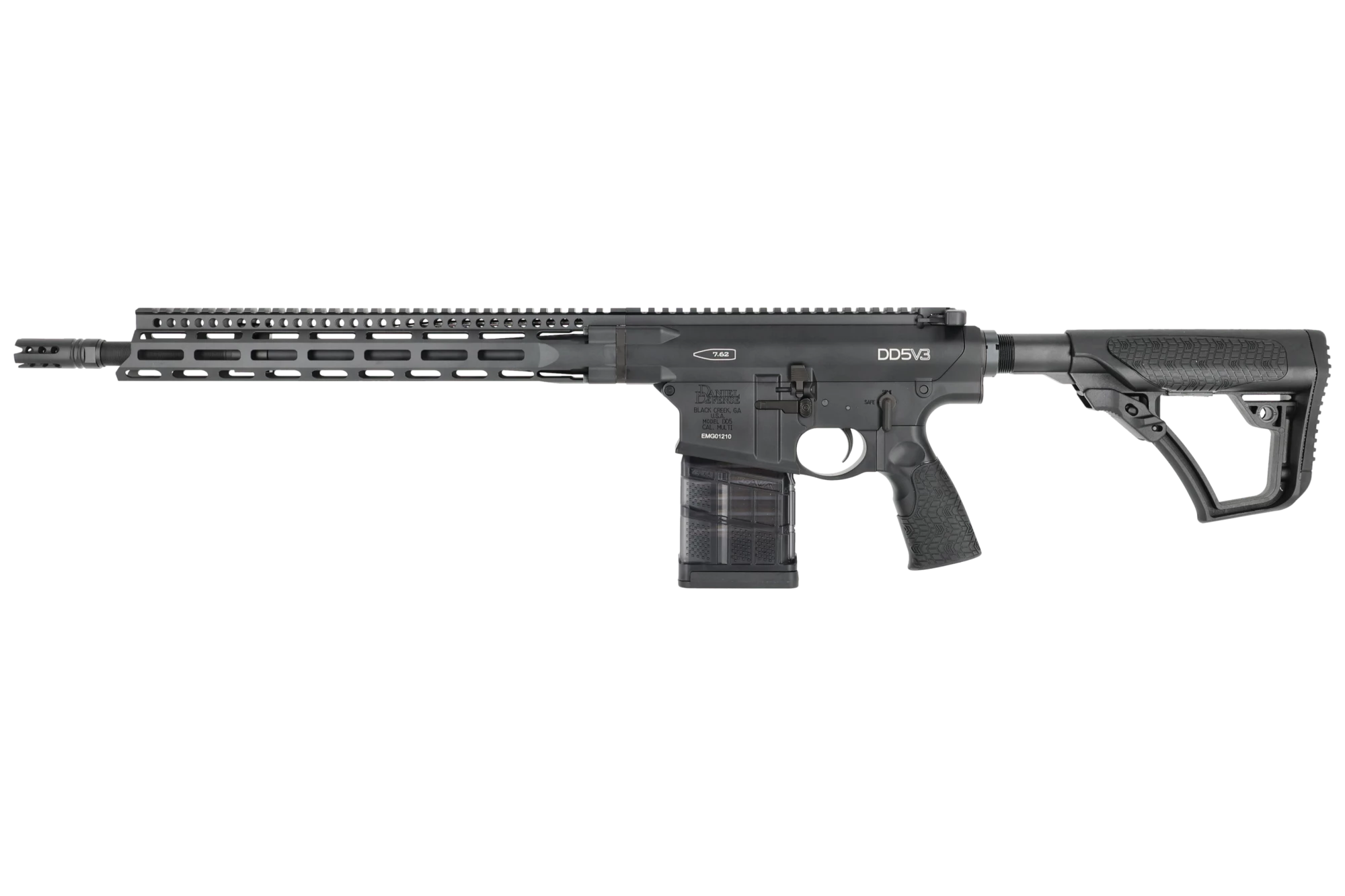 La réplique reçoit un garde-main DD5 free float M-LOK de 15 pouces sous licence Daniel Defense.