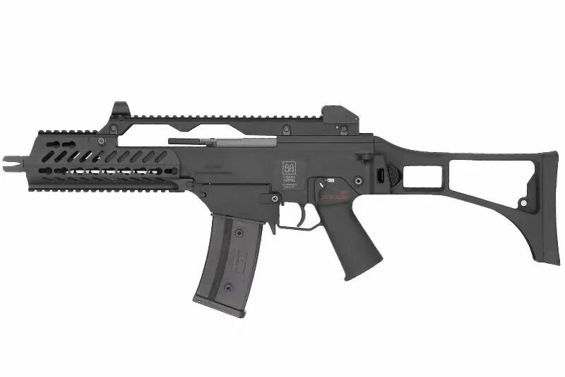 Côté performances et configuration, la réplique dispose d'un canon interne de 270 mm, d'un Hop-Up réglable ainsi qu’un chargeur Hi-Cap d’une capacité de 350 billes. Il s'agit d'un format polyvalent, capable de rester maniable tout en conservant l’architecture caractéristique du G36.