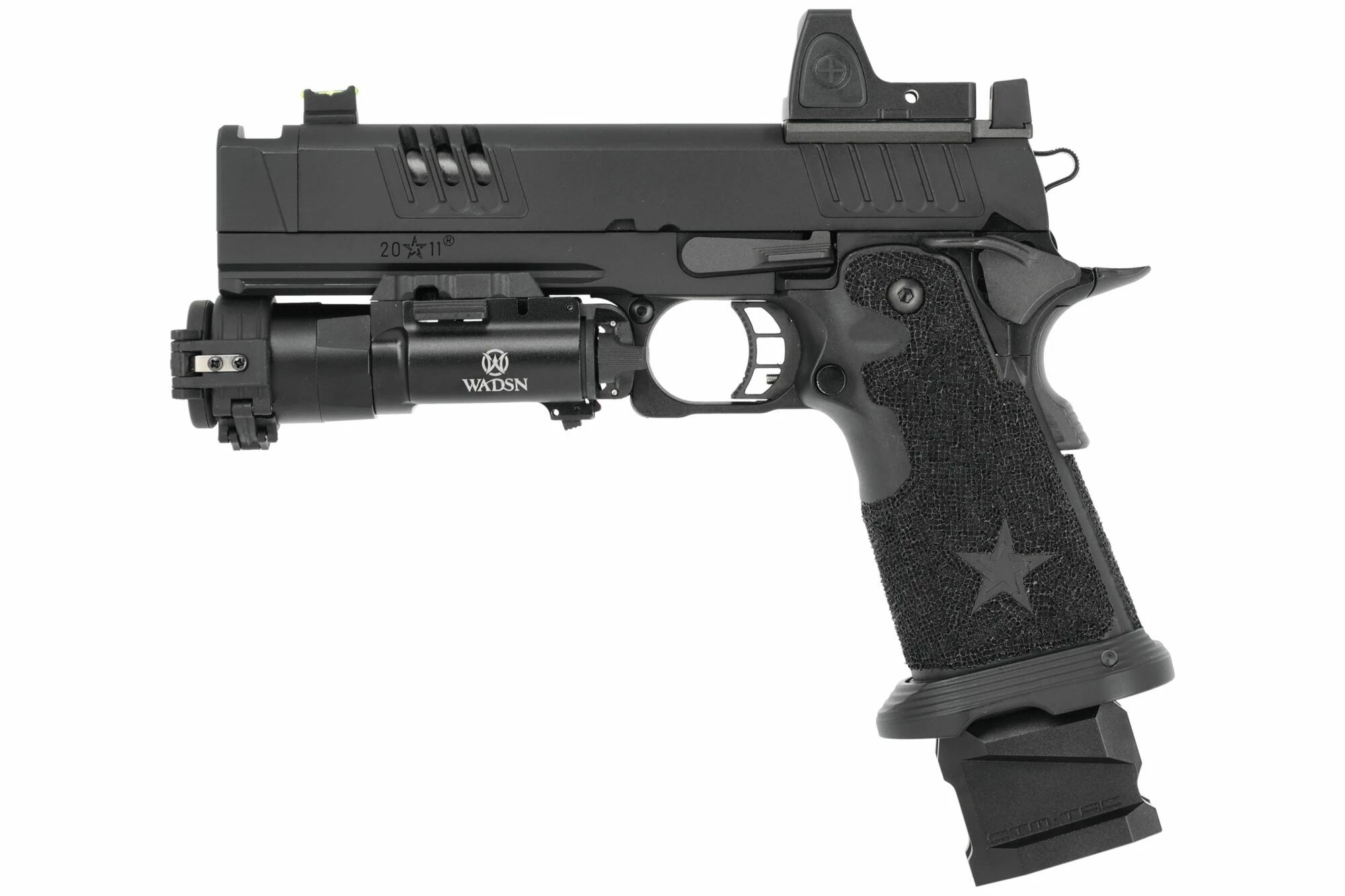 " Cette réplique Staccato XC custom offre une prise en main sûre et une acquisition rapide même dans l'obscurité. Son diffuseur me permet d'éblouir efficacement mes adversaires et me donne un avantage non négligeable. "
